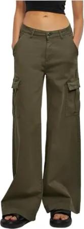 Damen Hose Ladies High Waist Wide Leg Twill Cargo Pants Olive 33