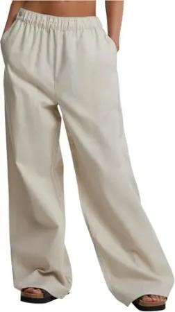Damen Hose Ladies Linen Mixed Wide Pants, Weite Hose für Frauen, Baumwoll-Leinen-Mischung, Größen XS - 5XL