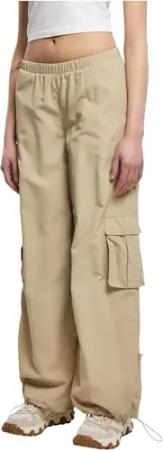 Damen Hose Ladies Wide Crinkle Nylon Cargo Pants Concrete XL
