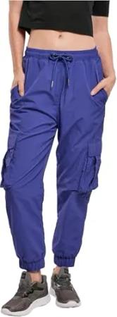 Ladies High Waist Crinkle Nylon Cargo Pants bluepurple S