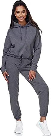 Damen Jogginganzug Trainingsanzug Sport Freizeit Hoodie & Jogginghose F200 Grau S