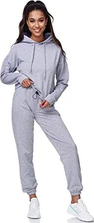 Damen Jogginganzug Trainingsanzug Sport Freizeit Hoodie & Jogginghose F200 Grau M