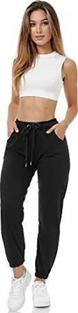 Damen Jogginghose Trainingshose Regular Fit Sporthose Jogging Sport Freizeit Hose F300 (L, Schwarz)