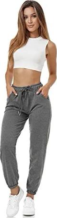 Damen Jogginghose Trainingshose Regular Fit Sporthose Jogging Sport Freizeit Hose F300 (L, Anthrazit)