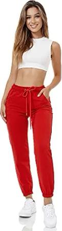 Damen Jogginghose Trainingshose Regular Fit Sporthose Jogging Sport Freizeit Hose F300 (S, Rot)