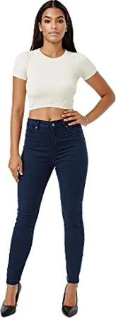Damen High Waist Skinny Jeans – Stretch Denim Hose im Slim Fit, Figurformende Damenjeans mit 5-Pocket Style, Dunkelblau F107 (Größe 34)