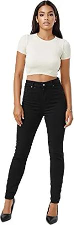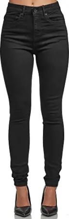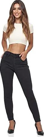 Jeans Damen High Waist Denim Slim Skinny Fit Jeanshose Stretch Hose F101 Schwarz 34