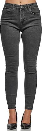 Jeans Damen High Waist Denim Slim Skinny Fit Jeanshose Stretch Hose F101 Anthrazit 36