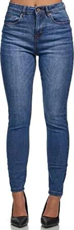 Jeans Damen High Waist Denim Slim Skinny Fit Jeanshose Stretch Hose F101 Blau 34