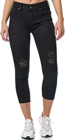 Skinny Fit Jeans Hose Damen Jeanshose mit Stretch im 5-Pocket-Style F105 (38, Schwarz)