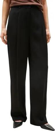 Damen Stoffhose Twill Straight Pants Relaxed Fit, Schwarz (Black), 46