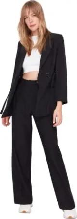 Black Wide Leg High Waist Woven Trousers TWOAW22PL0066, Black, 36