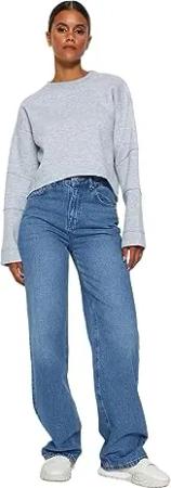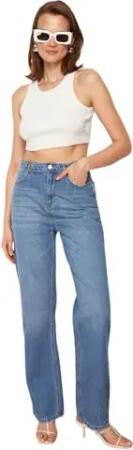 Damen Trendyol Herren Hoher Bund Bootcut & Flared Jeans, Blau, 34 EU