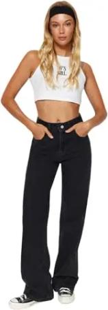 Damen Trendyol -Hohe Taille Mom Jeans, Schwarz, 32 EU