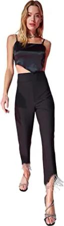 Damen Trendyol Posted Posted Pants Pants Chino, Schwarz, 34