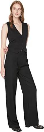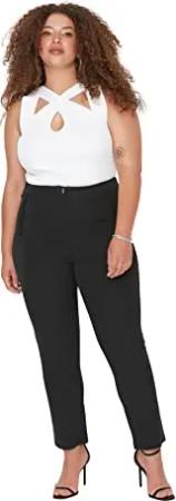 Damen Trendyol Hohe Taillenrippen Nähte Pants, Schwarz, 42 EU