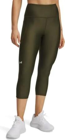 Damen Tech Hi Capri, High-Waist Sporthose mit rutschfestem Bund und Seitentasche, 3/4 Leggings mit 4-Wege-Stretch aus leichtem HeatGear,Expedition Green / / White,SM