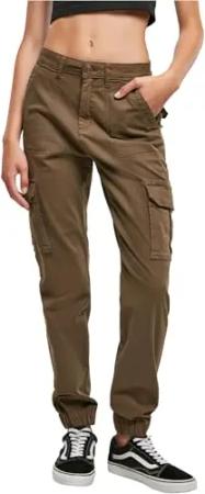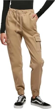 Damen Ladies High Waist Cargo Comfort Jogging Pants Hose, softtaupe, S