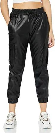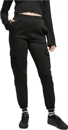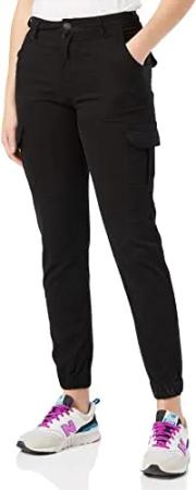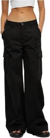 Damen Ladies High Waist Cargo Pants Hose, Black, 32