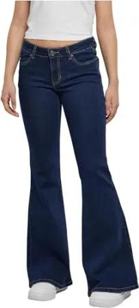 Damen Hose Ladies Mid Waist Wide Denim mid Indigo Washed 26