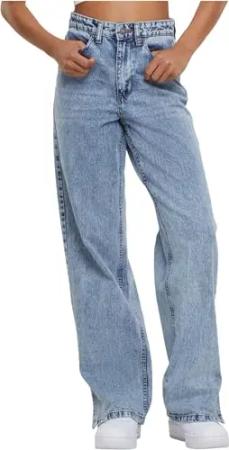 Damen Hose Ladies Wide Leg Slit Denim Tinted lightblue Washed 32