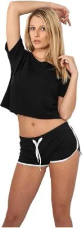 Damen Ladies French Terry Hotpants Short, Mehrfarbig (blk/wht 50), 42 (Herstellergröße: XL)