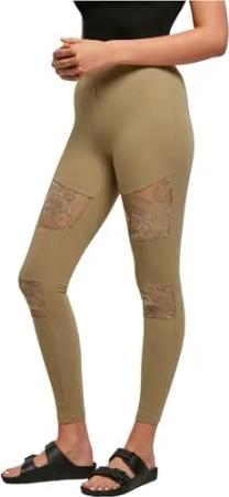 Damen Ladies Laces Inset Leggings Khaki, XXL