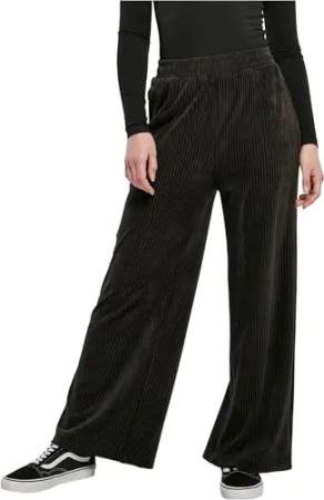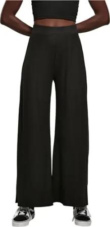 Damen Ladies Rib Jersey Wide Leg Pants, Schwarz, S EU