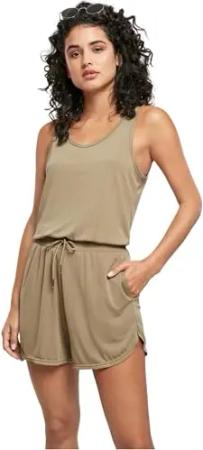 Damen Ladies Short Sleevless Modal Jumpsuit T-Shirt, Khaki, S