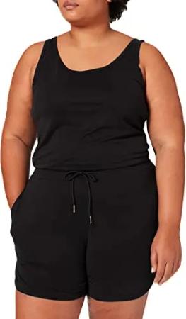 Damen Ladies Short Sleevless Modal Jumpsuit T-Shirt, Schwarz, XS