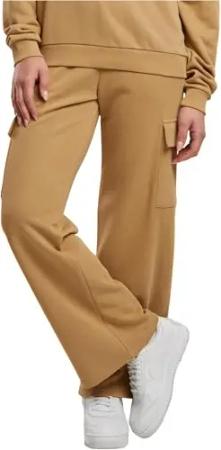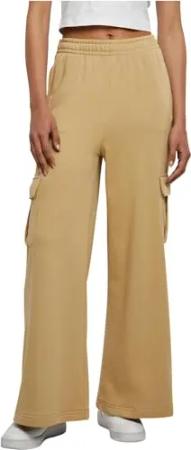 Ladies Highwaist Wide Leg Cargo Terry Pants Frauen Cargohose beige M