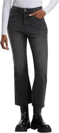 Damen Hose Ladies Distressed 90's Wide Leg Denim Pants Black Charcoal Washed 36
