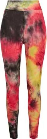 Ladies Tie Dye High Waist Leggings DarkPink/Black XS