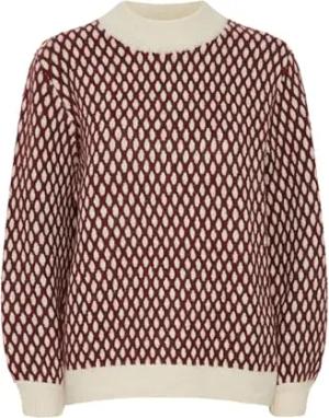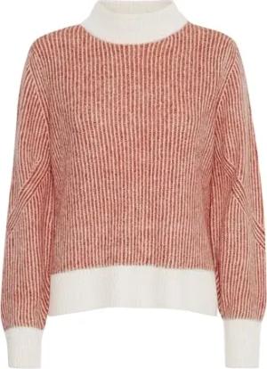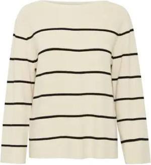 IHBOSTON Damen Strickpullover Feinstrick Pullover Pulli mit Rundhals Streifenmuster Loose fit, Größe:L, Farbe:Almond Milk Black Stripe (203332)