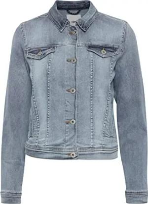 IHSTAMPE JA Damen Jeansjacke Denim Übergangsjacke mit Stretch und Knöpfen, Größe:36, Farbe:Washed light blue (19078)