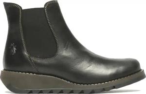 FLY Damen SALV Chelsea Leder Knöchelstiefel mit Keilabsatz, Schwarz