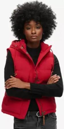 Superdry Damen Everest Steppweste mit Kapuze Rot - Größe: 38