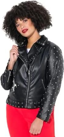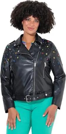 Damen große Größen Übergrößen Plus Size Bikerjacke, Lederoptik, farbige Glitzersteinchen schwarz 50 834339100-50