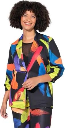 Damen große Größen Übergrößen Plus Size Blazer, Scuba, gemalter Druck limettengrün 48 838813409-48