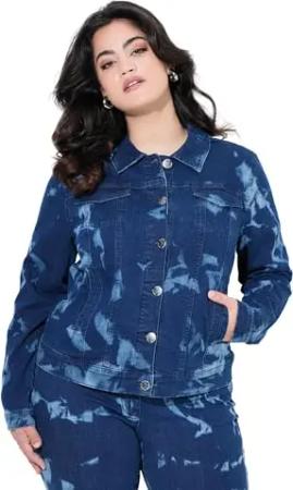 Damen große Größen Übergrößen Plus Size Jeansjacke Frieda, Batik, Langarm Blue Stone 46 841676902-46