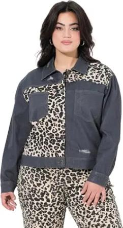 Damen große Größen Übergrößen Plus Size Jeansjacke, Oversized, Leo-Einsätze, Destroys Grey Denim 46 839591905-46
