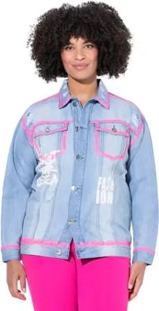 Damen große Größen Übergrößen Plus Size Jeansjacke, Oversized, Schriftzug, Neon-Kanten Light Blue 50 839306901-50