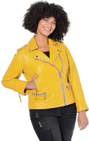 Damen große Größen Übergrößen Plus Size Leder-Bikerjacke, echtes Leder, Farbe, Langarm Zitrone 48 838691600-48
