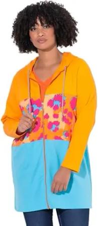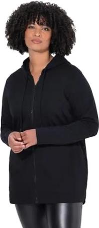 Damen große Größen Übergrößen Plus Size Long-Sweatjacke, A-Linie, Qualle auf dem Rücken, Kapuze schwarz 46 844326100-46