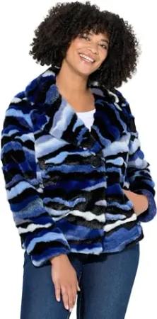 Damen große Größen Übergrößen Plus Size Plüschjacke, Straight Fit, offene Form, farbiges Muster dunkelblau 48 834929750-48