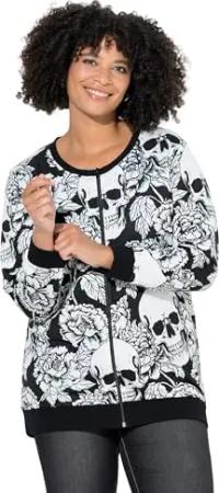 Damen große Größen Übergrößen Plus Size Sweatjacke, Totenkopf/Rosen schwarz 48 845851100-48