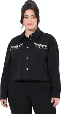 Damen große Größen Übergrößen Plus Size Twilljacke, Straight Fit, Rücken-Applikation schwarz 46 834090100-46