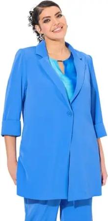 Damen große Größen Übergrößen Plus Size Blazer, Reverskragen, Seitenschlitze, 3/4-Arm Pfauenblau 58+ 836165740-58+