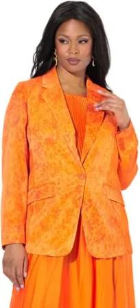 Damen große Größen Übergrößen Plus Size Satin-Blazer, Gemustert, Reverskragen, Langarm Hellorange 44 839607666-44
