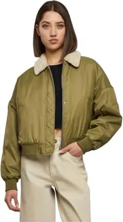 Damen Ladies Oversized Sherpa Mixed Bomber Jacket whitesand/Darkolive, 3XL